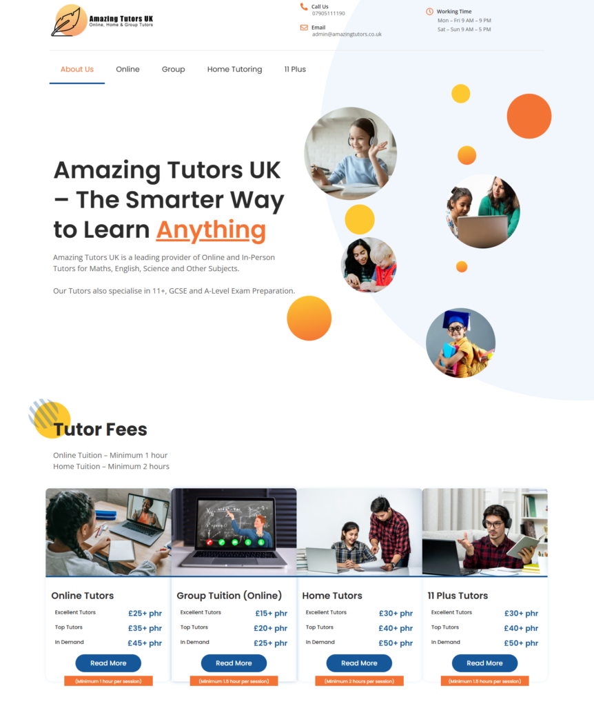 Amazing Tutors is an online tuition platform designed to connect students with qualified tutors across various subjects. I developed this website using WordPress with a clean, responsive design to ensure a smooth user experience for both students and tutors.