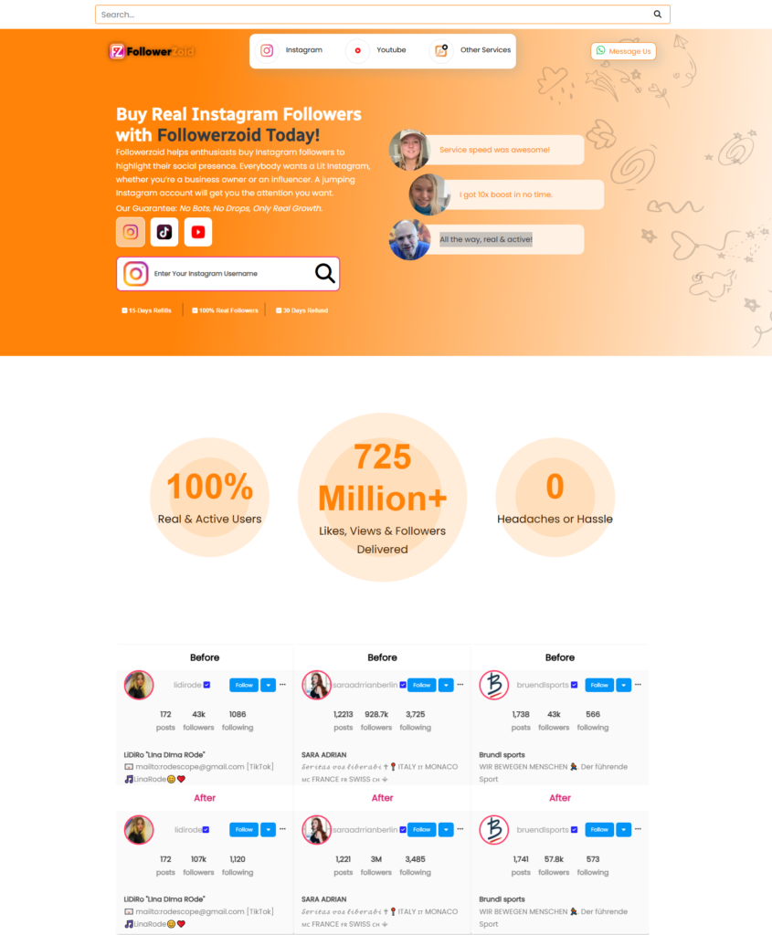 FollowerZoid is a social media growth platform designed to help users enhance their online presence across multiple social networks. I developed the complete responsive frontend using Laravel Blade with a modern, user-friendly interface.